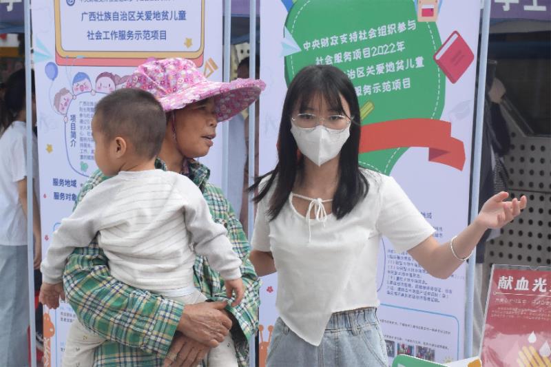 为深入学习贯彻习近平新时代中国特色社会主义思想,加强学生对社会工作专业的认同感,提升学生的实务能力,更好为人民服务,dg百家乐 社工党支部联合南宁市阳光雨露党支部在武鸣开展了地贫知识宣讲志愿服务活动。