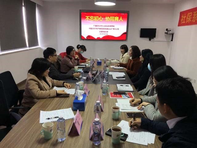 2022年1月18日上午,dg百家乐 党委唐忠书记、郑茸副书记,经济学与社会保障系黄李凤主任,医疗保险专业教师代表一行5人前往太平洋财产保险股份有限公司广西分公司进行党建与校企合作交流活动,并考察实习工作与毕业生就业情况。太平洋财产保险股份有限公司广西分公司刘翀副总经理出席并主持座谈会,分公司各主要部门负责人参加了交流座谈会。