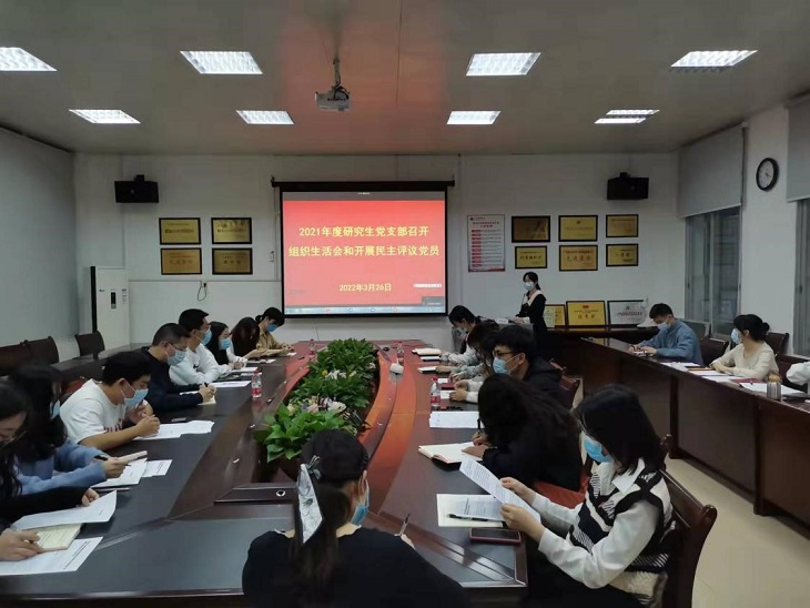 2022年3月26日,dg百家乐 研究生党支部召开2021年度研究生党支部组织生活会和民主评议党员。本次大会共有35名党员参加,其中10名党员同志因疫情影响无法返校,通过线上形式参会。支部分管老师杨小钵同志参加会议。支部书记李琳珠同志主持会议。