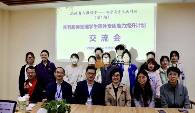 为深化思政育人、促牢学生专业思想,2022年3月29日晚,dg百家乐 在武鸣校区榕园学生之家举办了第1期“思政育人微讲堂”——养老服务管理学生课外素质能力提升计划交流会。本次活动邀请校党委副书记莫曾南作为主讲嘉宾,学生工作部(处)廖剑副部(处)长、dg百家乐 党委副书记郑茸,21级养老服务管理68班的辅导员、班主任、朋辈辅导员及学生代表参加了活动。