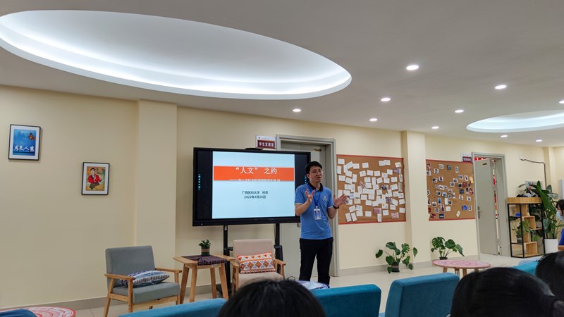 杨老师围绕“‘人文’之约”的主题,从何谓“人文”的问题切入,通过《论语》论“人”和“君子”的思想阐释孔子的“人”“文”观,与学生一起探讨人文学生应有的素养。