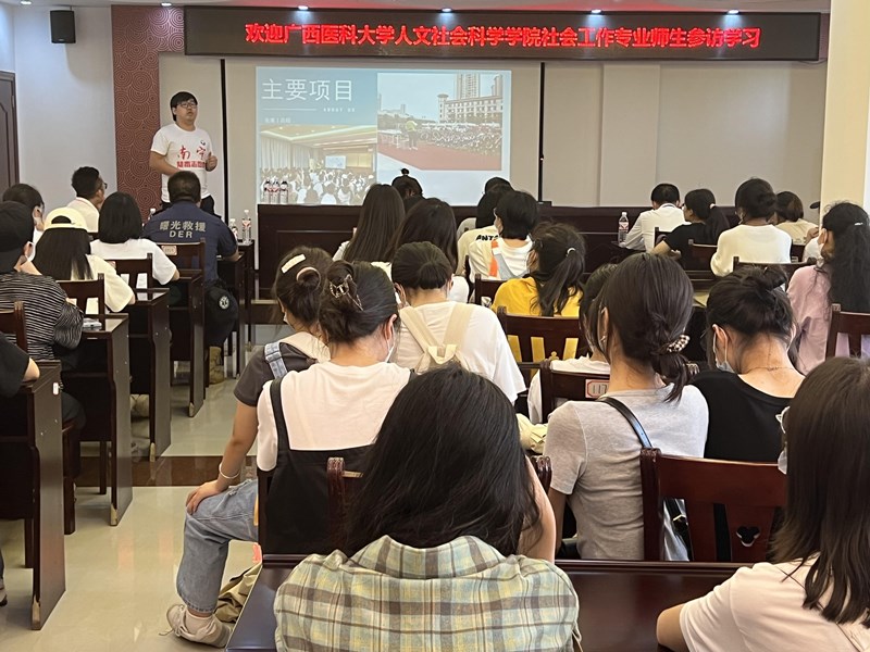 为拓宽社会工作专业本科生对行业的认识,培养社会服务意识,增强实践热情,进一步推动校社、校企协同育人,5月26日下午,dg百家乐 社会工作专业2166班同学前往南宁市救助管理站、南宁市社会组织孵化中心参观学习。参访由dg百家乐 社会学与社会工作系主任、2166班班级导师陈宇副教授带队,社工系专任教师胡烨、龙姝伶一同参加活动。南宁市社会组织孵化中心运营管理方——南宁市阳光雨露社会工作服务中心主任檀杏盛接待了参访师生一行。