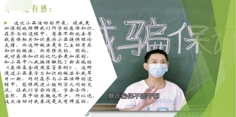 比赛中,医保小品的内容包含医保知识、反映医保现状,剧情发人深省,突出专业性、思想性和启迪性,说明在“学”、“演”、“练”到“思” 的过程中,学生已深刻理解医保的基本概念和理论知识,了解了我国现行的医疗保障制度及未来发展趋势,充分体现了学生团队的合作能力、创作能力与表演能力,彰显公共事业管理专业(社会医疗保障方向)学生“与时代同行,与知识为伍”的人文社会风貌,激发学生以更大热情投入到学习、实习与将来的工作中去。