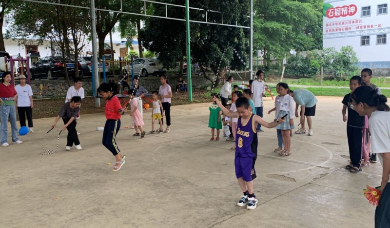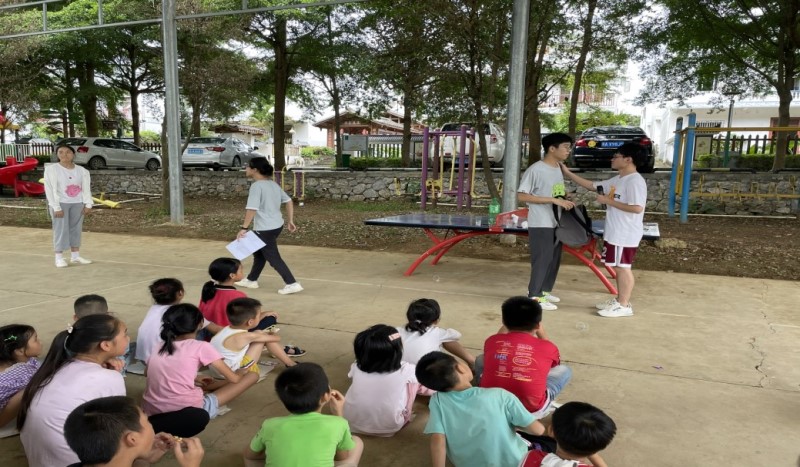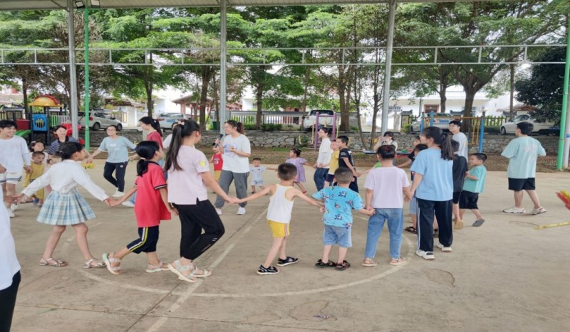 图2 大学生志愿者与定江村小朋友们共同参与游戏