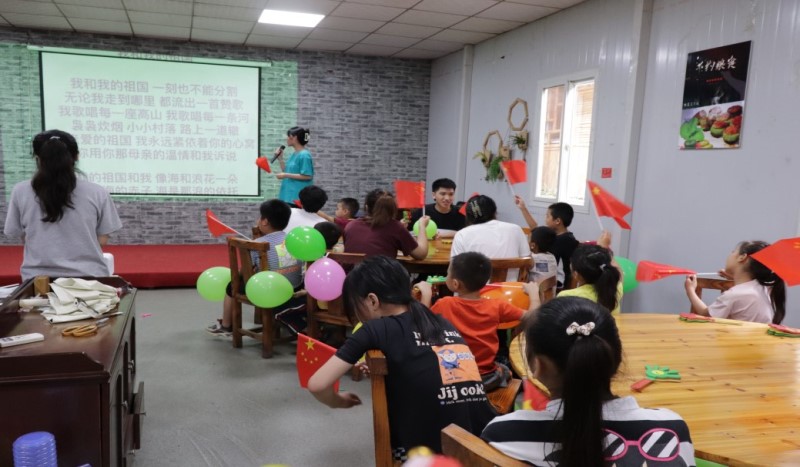 在7月6日上午的《我和我的祖国》主题活动中,大学生志愿者先是和小朋友们唱响红歌,引导小朋友们在自己绘画的国旗下自己畅想美好未来。而后陪伴小朋友们观看《觉醒年代》中关于社会主义来历与中国共产党成立的重要片段,讲述党史故事,在小朋友们的心中播下了为自身理想和中华民族伟大复兴中国梦而奋斗的火种。