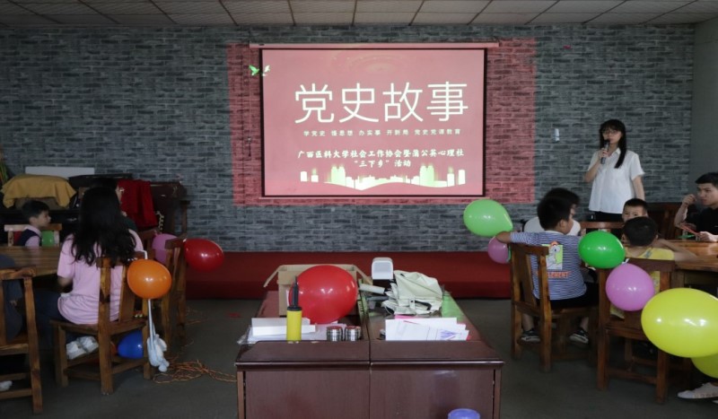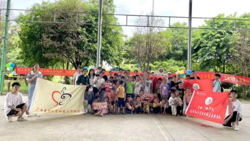 为深入学习宣传习近平新时代中国特色社会主义思想和党的十九届六中全会精神,以有力行动、有效成果迎接党的二十大胜利召开,锻炼青年大学生在“学思践悟”中提升政治认同感、厚植家国情怀,真正做到“在社会课堂中受教育、长才干、作贡献,坚定信念听党话、跟党走”,广西医科大学社会工作协会联合dg百家乐 社工系教师党支部、蒲公英心理社、广西壮族自治区关爱地贫儿童社会工作服务示范项目团队,共同开展2022年大学生暑期“三下乡”社会实践活动。参与本次活动的师生共29人,团队一行于7月4日至7日赴南宁市隆安县那桐镇定江村开展儿童安全卫生教育与人际沟通教育、地中海贫血疾病预防宣传、老年人健康养生宣传与乡村振兴调研等活动。