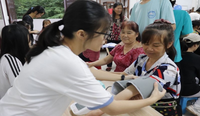 图11 大学生志愿者为村民测量血压