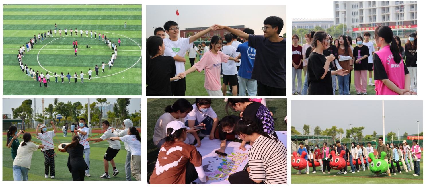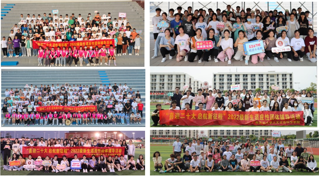 9月24、25日,dg百家乐 在武鸣校区田径场开展了8场“喜迎二十大 启航新征程”新生团体辅导活动。活动分为班级破冰、班级建设和展示、班内各组比拼三个环节。新生通过“同心圆”“桃花朵朵开”“心有千千结”等热身游戏,逐渐融入到集体;在破冰游戏中相互介绍,彼此熟识,建立起团队共识和默契;在班级建设环节,进行了“班服班徽”“口号”“团队姿势”“班歌”等建设,同学们积极参与,展现精神风采。活动最后,各班分小组,在“两人三足”“同心鼓”“一圈到底”“毛毛虫大战”等游戏中展现出极强的凝聚力。
