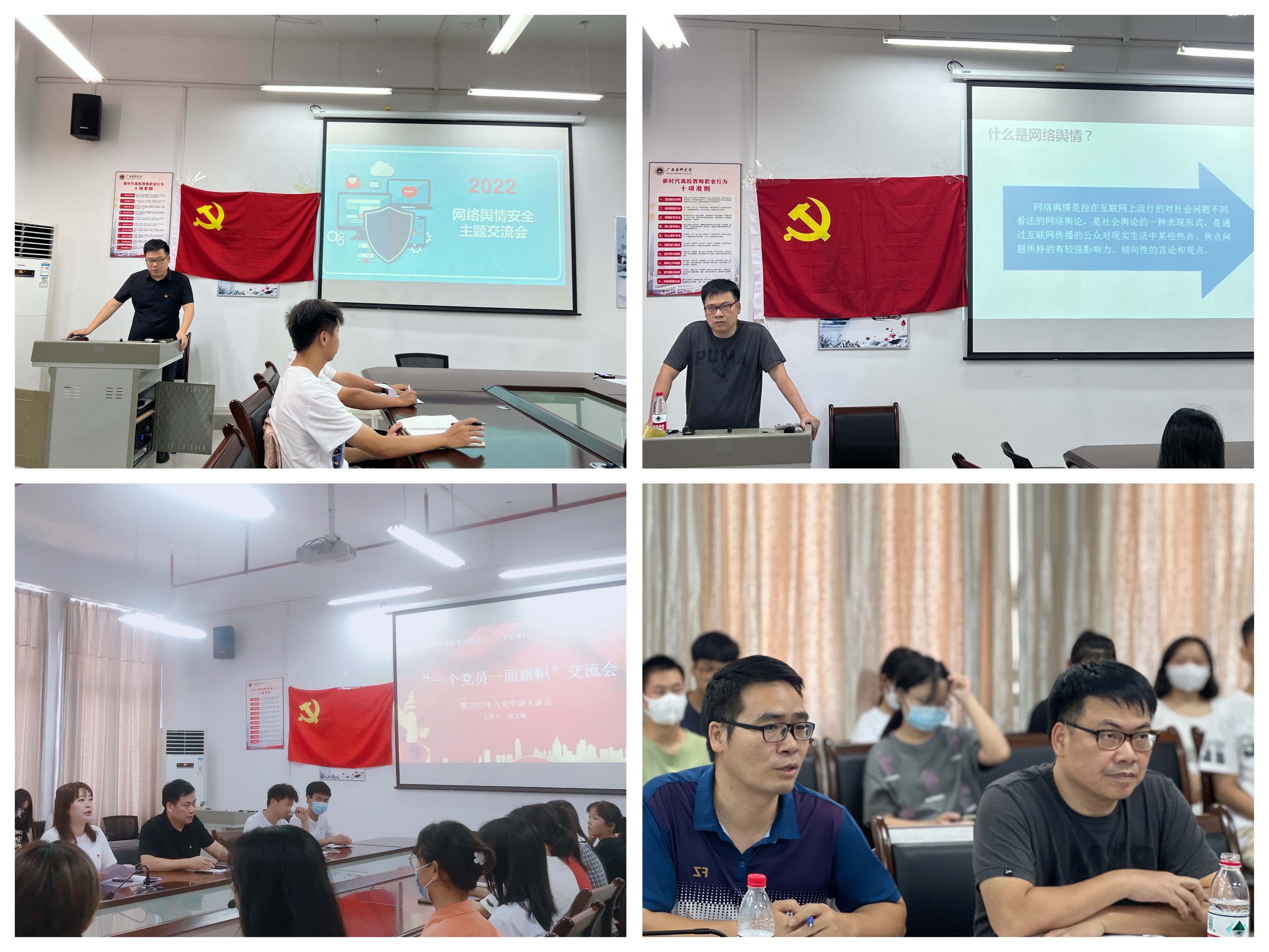 10月2日,郑茸副书记开展“青春逐梦者•我们这十年”故事分享会,师生通过发生在身边的故事回顾党的十八大以来小家与大国的变化,激发学子积蓄奋斗力量。10月4、5日,唐忠书记开展“书记有约——一个党员一面旗帜”“网络舆情安全”交流会,提升大学生党员党性修养、激励团员积极向党组织靠拢、引导学生营造清朗网络空间。