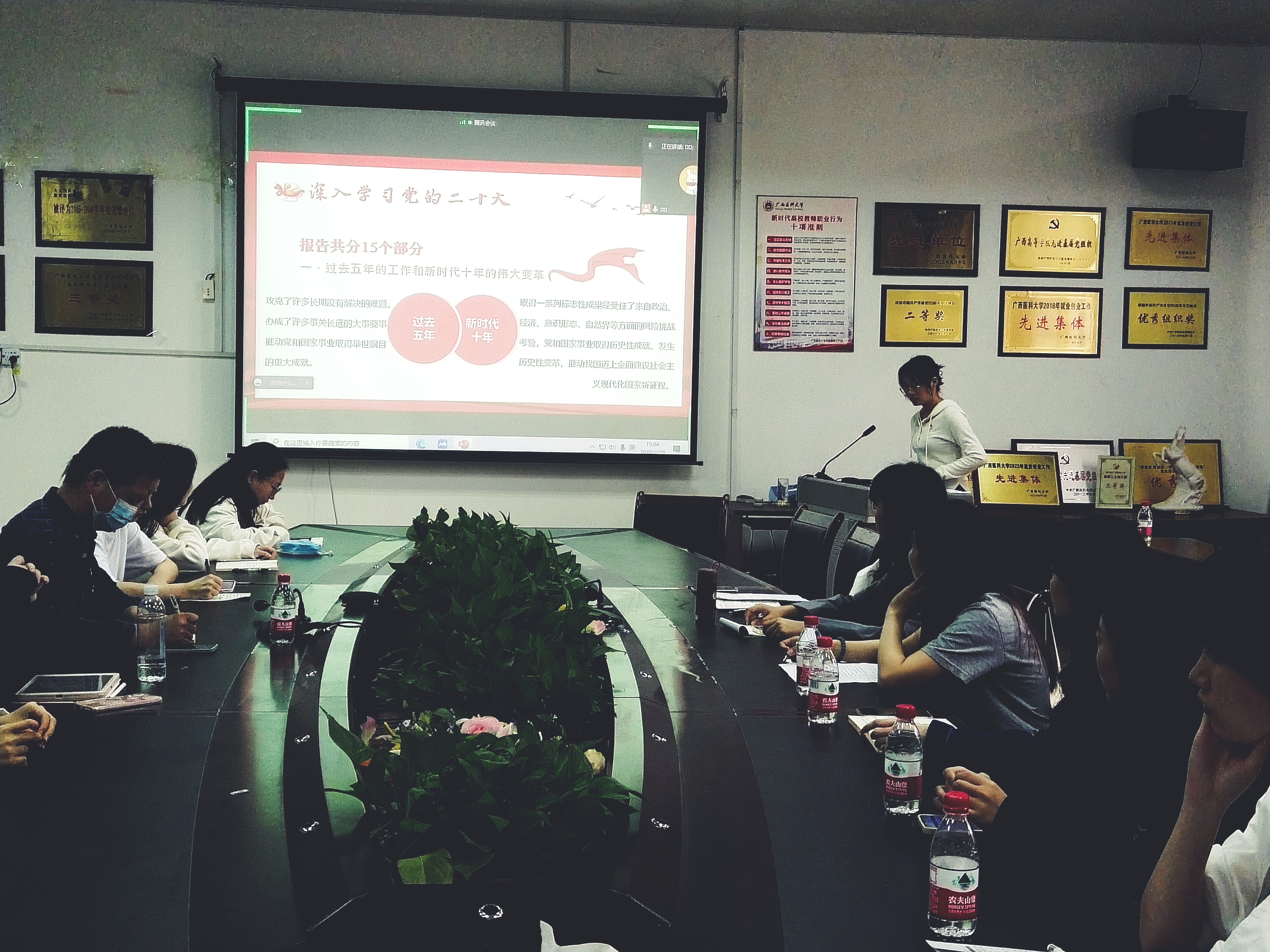 会议共有五项议程,第一项议程为支部全体党员同志集体学习党的二十大精神。黄易同志向大家介绍了二十大报告的主要内容和精神,报告中指出广大青年要坚定不移听党话、跟党走,怀抱梦想又脚踏实地,敢想敢为又善作善成,立志做有理想、敢担当、能吃苦、肯奋斗的新时代好青年,让青春在全面建设社会主义现代化国家的火热实践中绽放绚丽之花。