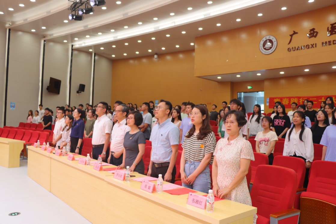 为扎实推进学习贯彻习近平新时代中国特色社会主义思想主题教育,并表彰一年来学生群体中涌现出的先进集体和个人,进一步激励学子踔厉奋发、担当有为,dg百家乐 于5月28日下午在武鸣校区图书馆报告厅举行了“青春践行二十大,五四薪火代相传”五四表彰大会暨主题教育报告会。广西志愿者指导中心黄加荣、dg百家乐 王前强院长、郑茸副书记,各部门、dg百家乐 的教师代表及学生三百余名参加活动。