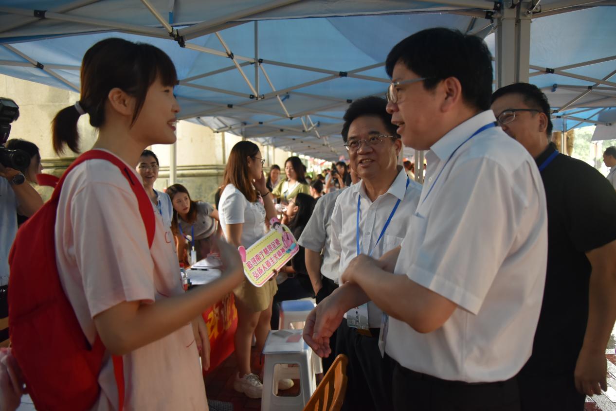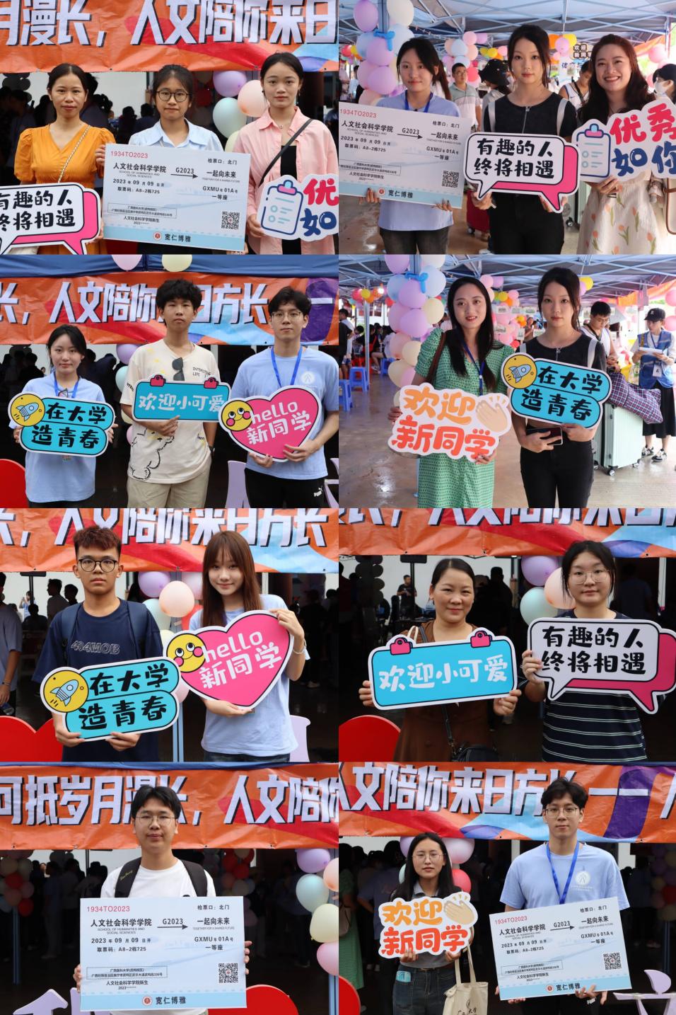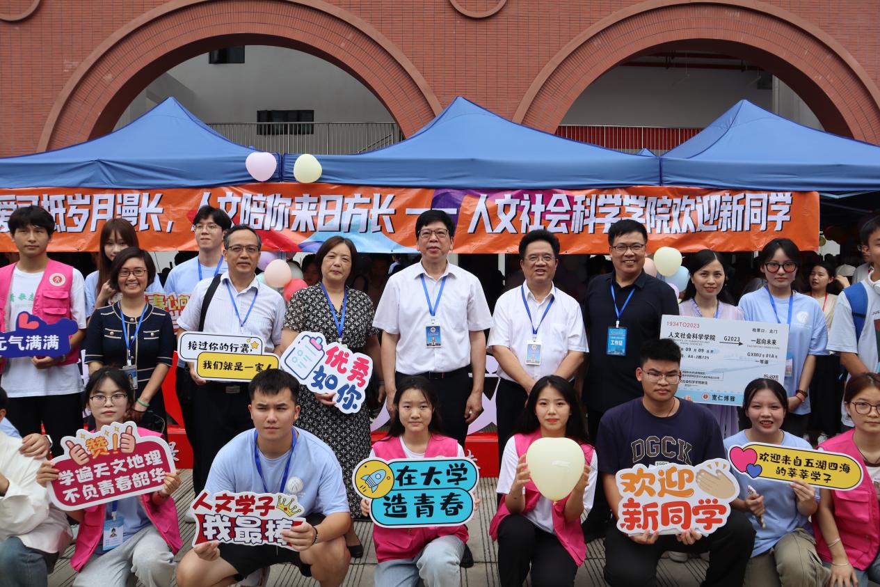 随着报道工作的持续进行,学校领导、相关职能部门负责人在dg百家乐 领导的陪同下,来到人文dg百家乐 的迎新报到点,与现场工作人员了解新生报到注册情况,慰问现场工作人员和志愿者,并与同学们合影。