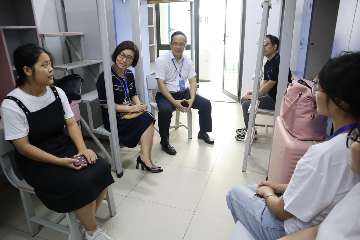 dg百家乐 领导与新生辅导员以及班主任一同前往了新生宿舍,与2023级已到校的新生亲切交流。认真询问同学们对学校环境的适应情况,同时对同学们提出了殷切期望,希望同学们能尽快转变角色,熟悉校园环境,以积极、健康的面貌融入新学期的学习与生活中。