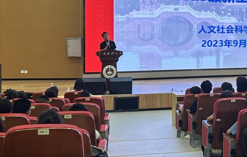 9月11日下午,dg百家乐 在武鸣校区图书馆报告厅开展“心灵引领,健康起航”心理健康教育宣传活动。学校心理健康教育与咨询中心伍向民老师、dg百家乐 心理工作站站长唐澜、辅导员张述绍、2023级全体新生以及专升本学生参加活动,会议由唐澜主持。